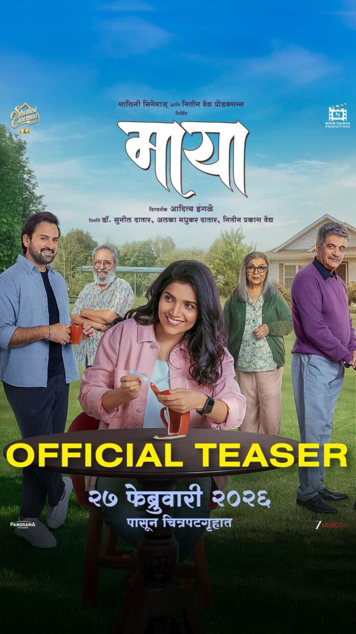 शालिनी सिनेमाज आणि नितीन वैद्य प्रॉडक्शन निर्मित या चित्रपटाचे निर्माते डॉ. सुनील दातार, अलका मधुकर दातार आणि नितीन प्रकाश वैद्य आहेत. आदित्य इंगळे दिग्दर्शित ‘माया’ हा चित्रपट २७ फेब्रुवारी २०२६ रोजी सर्वत्र प्रदर्शित होणार आहे. टीझरमुळेच चित्रपटाबद्दल प्रेक्षकांमध्ये उत्सुकता वाढताना दिसत असून, नात्यांच्या गुंत्यातून उमटणारी ही हळवी तरीही खोलवर जाणारी कथा प्रेक्षकांच्या मनात नक्कीच घर करून जाईल, अशी अपेक्षा व्यक्त केली जात आहे.