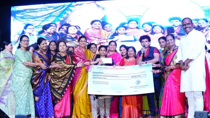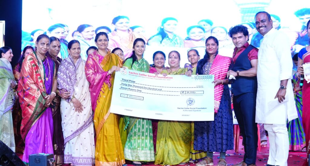या कार्यक्रमात प्रथम क्रमांक विजेत्या पुष्पा लोकरे यांना मानाच्या पैठणी सह रोख १,११,१११/- रुपयांचे बक्षीस देण्यात आले. द्वितीय क्रमांक विजेत्या सुनिता सत्यनारायण क्षीरसागर यांना रुपये ५१,१११/- रोख व मानाची पैठणी, तृतीय क्रमांक विजेत्या निकिता ऋषिकेश माने यांना रुपये ३१,१११/- रोख व मानाची पैठणी देऊन सन्मानित करण्यात आले. तसेच अमृता संदीप हळदणकर, गजराबाई मुरलीधर काटे, किरण अरुण पाटील, सोनाली आशुतोष देसले आणि अमृता रामेश्वर दहे या लकी ड्रॉ विजेत्यांना प्रत्येकी ११,१११/- रोख व आकर्षक साडी देऊन गौरविण्यात आले. तसेच उपस्थित प्रत्येक महिला भगिनींना प्रोत्साहन देण्यासाठी आकर्षक साडी भेट देण्यात आली. क्रांतीनाना मळेगांवकर यांनी न्यू होम मिनिस्टर खेळ पैठणीचा या कार्यक्रमाचे सादरीकरण केले. सचिन साठे सोशल फाऊंडेशन च्या सर्व पदाधिकारी व कार्यकर्त्यांनी कार्यक्रमाचे उत्कृष्ट संयोजन केले होते.