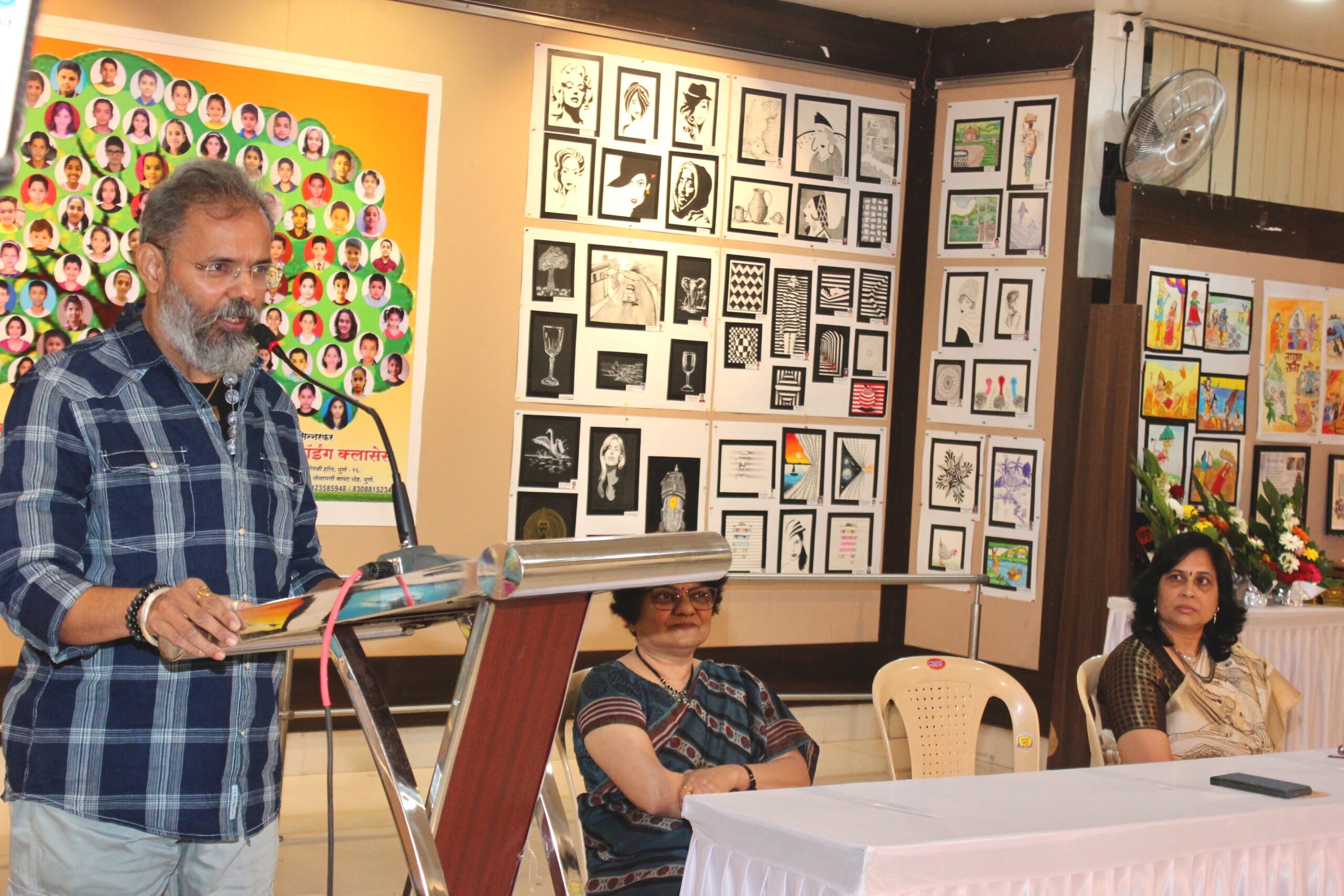 पालकांनी मुलांची आवड व कल ओळखून त्यांना योग्य दिशेने प्रोत्साहन द्यावे. ड्रॉईंग, डिझाईन व आर्किटेक्चर सारख्या क्षेत्रात यशस्वी होण्यासाठी सातत्यपूर्ण सराव अत्यंत आवश्यक आहे. मोबाईलच्या अतिवापराऐवजी कला जोपासल्यास मुलांचा एकाग्रता व कल्पकता निश्चित वाढते.शैला सिन्नरकर यांनी माहिती दिली की, हे प्रदर्शन ३ फेब्रुवारीपर्यंत सकाळी १० ते रात्री ८.३० या वेळेत पुणेकरांसाठी विनामूल्य खुले आहे. यावर्षी प्रदर्शनात १३० विद्यार्थ्यांनी सहभाग घेतला असून ‘पाणी वाचवा’, ‘पृथ्वी वाचवा’, ‘सेव्ह टायगर’, सोशल मीडियाबाबत जागरूकता, व्यसनमुक्ती, भारतीय सैन्याचा अभिमान, झाडे वाचवा असे सामाजिक संदेश देणारी चित्रे प्रदर्शित करण्यात आली आहेत. यासोबतच पोर्ट्रेट्स, कॅनव्हास पेंटिंग, कॉफी पेंटिंग, म्यूरल्स, निसर्गचित्रे, पेन्सिल शेडिंग व स्थिरचित्रे पाहायला मिळत आहेत.कार्यक्रमाचे सूत्रसंचालन संजय भुजबळ यांनी केले.