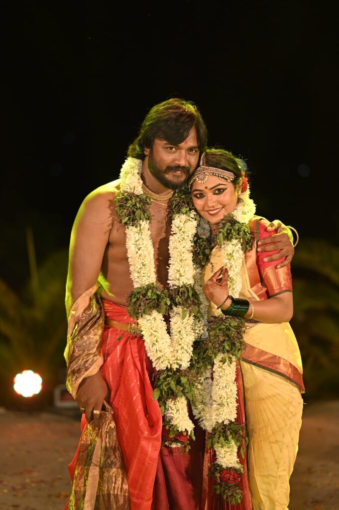 नृत्यातून अर्पण केली ‘साखरपुडा’ भेट – या सोहळ्याचे मुख्य आकर्षण म्हणजे वैष्णवीने सादर केलेले भरतनाट्यम. आपल्या कलेवर अपार श्रद्धा असलेल्या वैष्णवीने उपस्थितांसमोर ‘आरंगेत्रम’मधील अलरीपु, वर्णम, ‘सखी हे’, जयदेव आणि तिलाना हे प्रकार सादर केले. भरजरी पेहराव आणि पायांतील घुंगरांच्या नादात पार पडलेला हा विवाह सोहळा उपस्थितांच्या डोळ्यांचे पारणे फेडणारा ठरला.
