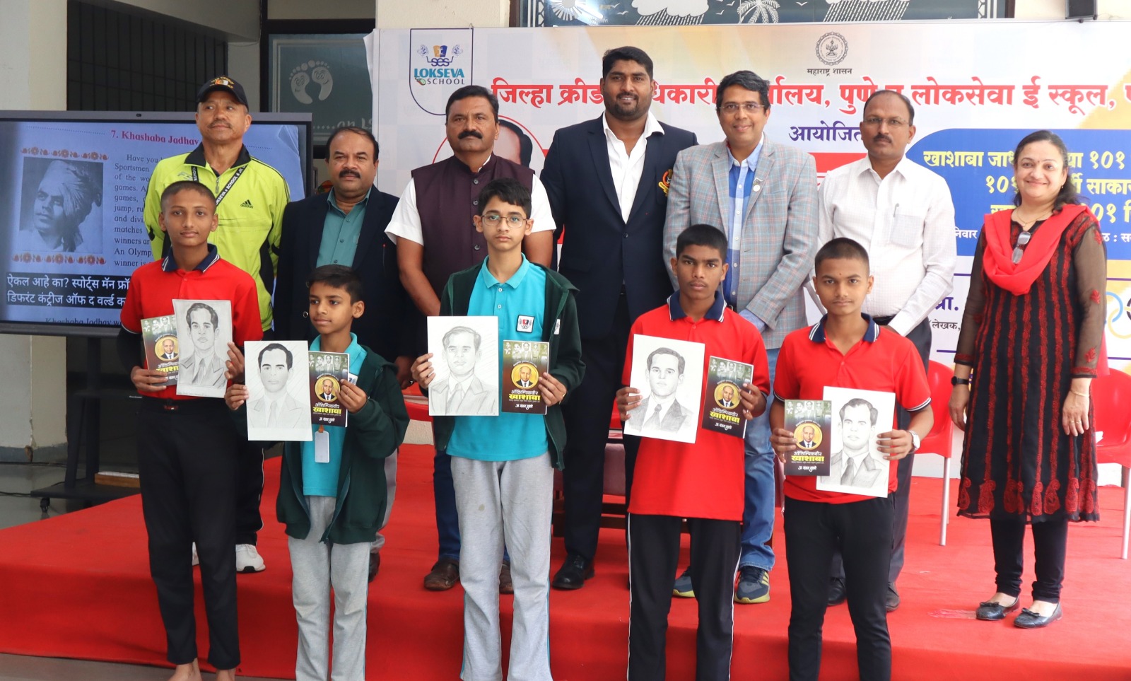 पाषाण येथील लोकसेवा ई स्कूलमध्ये खाशाबा जाधव यांच्या 101 जयंती निमित्त 101 विद्यार्थीनी एकाच वेळी त्यांची 101 चित्रे साकरली. याप्रसंगी पॅरा ऑलिम्पिक रौप्य पदक विजेता सचिन खिलारी, लोकसेवा प्रतिष्ठानचे संस्थापक अध्यक्ष दिपक पायगुडे, लेखक प्रा. संजय दुधाणे, जिल्हा क्रीडा अधिकारी जगन्नाथ लकडे, प्राचार्य पी. एच. षाफीमोन, क्रीडा अधिकारी दादासाहेब देवकाते आदी मान्यवर उपस्थित होते.