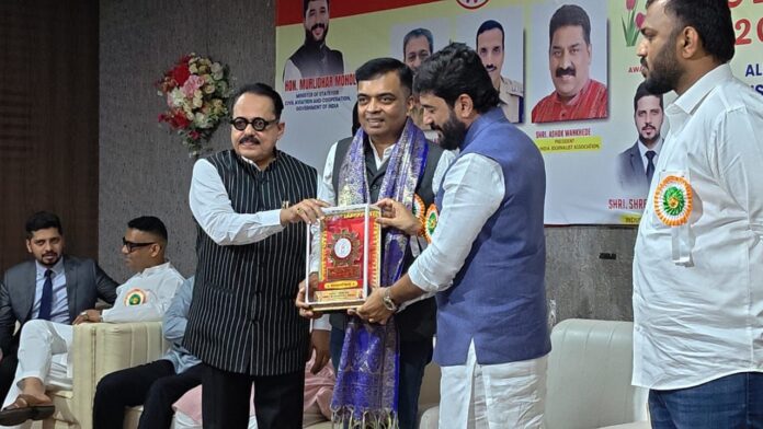 सांगली-मिरज : पत्रकारिता क्षेत्रातील उल्लेखनीय कार्याबद्दल महाराष्ट्र राज्य पत्रकार संघ (मुंबई) डिजिटल मीडिया, पुणे अध्यक्ष समीर देसाई यांना उत्कृष्ट पत्रकार पुरस्कार प्रदान करण्यात आला. हा पुरस्कार खासदार तथा सहकार आणि नागरी विमान वाहतूक राज्यमंत्री मुरलीधर मोहोळ यांच्या हस्ते प्रदान करण्यात आला.