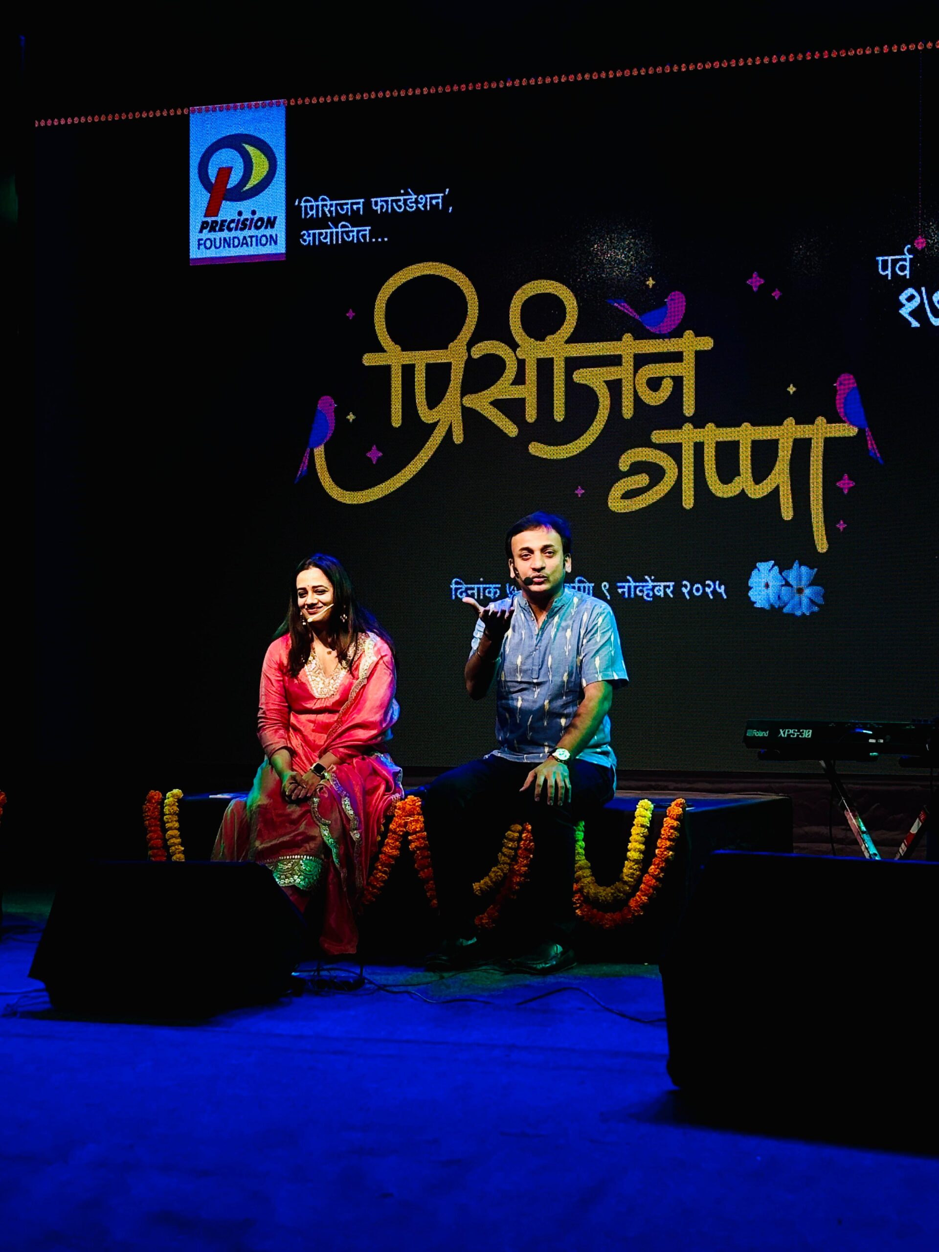 प्रिसिजन गप्पा २०२५ या उपक्रमाच्या पहिल्या दिवशी “संकर्षण व्हाया स्पृहा…!” या बहारदार कार्यक्रमाने रंगतदार प्रारंभ झाला. सोलापूरच्या रंगभवन सभागृहात सादर झालेल्या या कार्यक्रमात अभिनेता संकर्षण कऱ्हाडे आणि कवयित्री-अभिनेत्री स्पृहा जोशी यांच्या प्रभावी सादरीकरणाने रसिक मंत्रमुग्ध झाले.