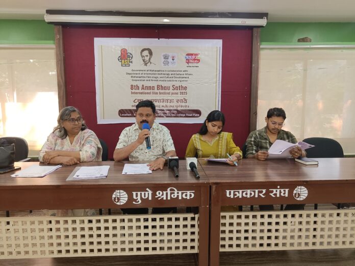पुणे : महाराष्ट्र शासनाच्या सांस्कृतिक कार्य विभाग तसेच महाराष्ट्र चित्रपट, रंगभूमी व सांस्कृतिक विकास महामंडळ यांच्या सहकार्याने अण्णा भाऊ साठे आंतरराष्ट्रीय चित्रपट महोत्सव समिती व निर्मिती मीडिया सोल्युशन्स यांच्या वतीने आयोजित ८ वा अण्णा भाऊ साठे आंतरराष्ट्रीय चित्रपट महोत्सव – २०२५ याचा उद्घाटन सोहळा शुक्रवार, २६ डिसेंबर २०२५ रोजी राष्ट्रीय चित्रपट संग्रहालय, लॉ कॉलेज रोड, पुणे येथे उत्साहात पार पडणार आहे. अशी माहिती आयोजित केलेल्या पत्रकार परिषदेत महोत्सवाचे दिग्दर्शक संदीप ससाणे, प्रतिमा परदेशी, सहसंयोजिका नेहा भुकण, निलेश रसाळ यांनी दिली.