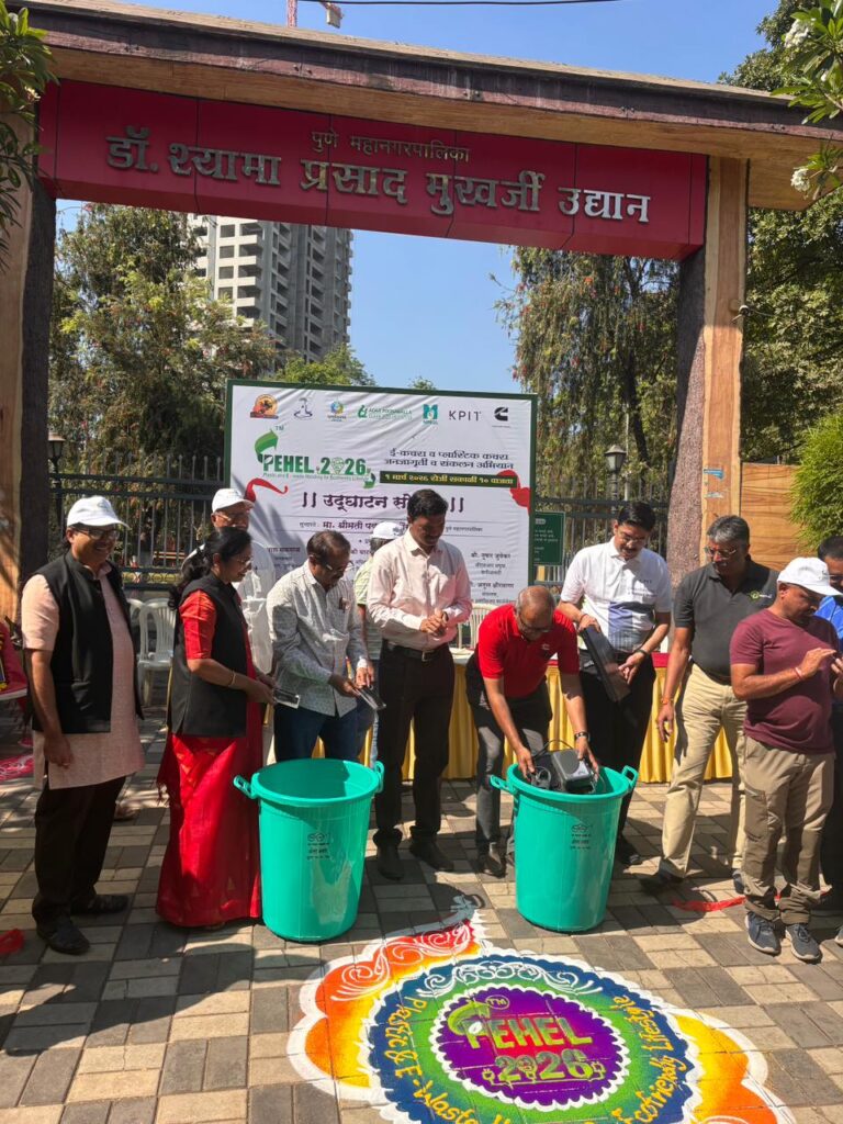 पुणे – पूर्णम इकोव्हिजन फाऊंडेशन, पुणे महानगरपालिका, कमिन्स इंडिया फाऊंडेशन, आदर पूनावाला – क्लीन सिटी इनिशिएटीव्ह, एम.एन.जी.एल, के.पी.आय.टी आणि पर्यावरण संरक्षण गतिविधी यांच्यामार्फत संत गाडगेबाबा यांच्या जयंतीनिमित्त पेहेल-२०२६ या पुणे शहरातील सर्वांत मोठ्या ई-कचरा व प्लास्टिक कचरा जनजागृती व संकलन अभियानाचा उद्घाटन समारंभ आज कर्वेनगर येथील डॉ. श्यामाप्रसाद मुखर्जी उद्यान येथे पार पडला. यावेळी उपस्थित मान्यवर आणि जागरूक नागरिकांनी संकलन केंद्रावर ई-कचरा दिला.