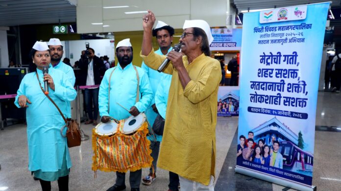 पिंपरी,  : पिंपरी चिंचवड महापालिका सार्वत्रिक निवडणुकीच्या पार्श्वभूमीवर मतदारांमध्ये मतदानाबाबत जागृती निर्माण करण्यासाठी पिंपरी चिंचवड महापालिका मेट्रो स्थानक येथे प्रवाशांसाठी मतदान जनजागृती पथनाट्य तसेच फ्लॅश मॉबचे आयोजन करण्यात आले होते. या माध्यमातून ‘मतदान हा प्रत्येक नागरिकाचा हक्क व कर्तव्य आहे, तसेच प्रत्येक मत लोकशाही बळकट करण्यासाठी अमूल्य आहे’ असा संदेश देत नागरिकांना मतदानासाठी प्रोत्साहित करण्यात आले.