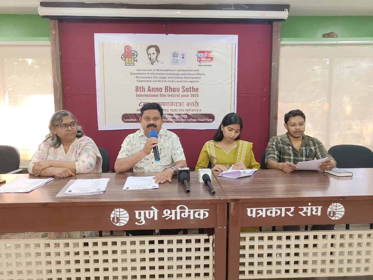 पुणे : महाराष्ट्र शासनाच्या सांस्कृतिक कार्य विभाग तसेच महाराष्ट्र चित्रपट, रंगभूमी व सांस्कृतिक विकास महामंडळ यांच्या सहकार्याने अण्णा भाऊ साठे आंतरराष्ट्रीय चित्रपट महोत्सव समिती व निर्मिती मीडिया सोल्युशन्स यांच्या वतीने आयोजित ८ वा अण्णा भाऊ साठे आंतरराष्ट्रीय चित्रपट महोत्सव – २०२५ याचा उद्घाटन सोहळा शुक्रवार, २६ डिसेंबर २०२५ रोजी राष्ट्रीय चित्रपट संग्रहालय, लॉ कॉलेज रोड, पुणे येथे उत्साहात पार पडणार आहे. अशी माहिती आयोजित केलेल्या पत्रकार परिषदेत महोत्सवाचे दिग्दर्शक संदीप ससाणे, प्रतिमा परदेशी, सहसंयोजिका नेहा भुकण, निलेश रसाळ यांनी दिली.