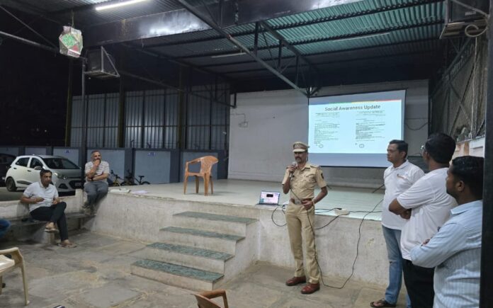 पिंपळे सौदागर : येथील द्वारकाधीश रेसिडेन्सीमध्ये सोशल मीडिया वापर व सायबर फसवणूक या विषयावर जनजागृती कार्यक्रम पार पडला. या कार्यक्रमात सांगवी पोलीस स्टेशनचे सीनियर पीआय श्री. दिव्यांश नांदेकर यांनी रहिवाशांना सायबर गुन्ह्यांपासून सावध राहण्याबाबत मार्गदर्शन केले.