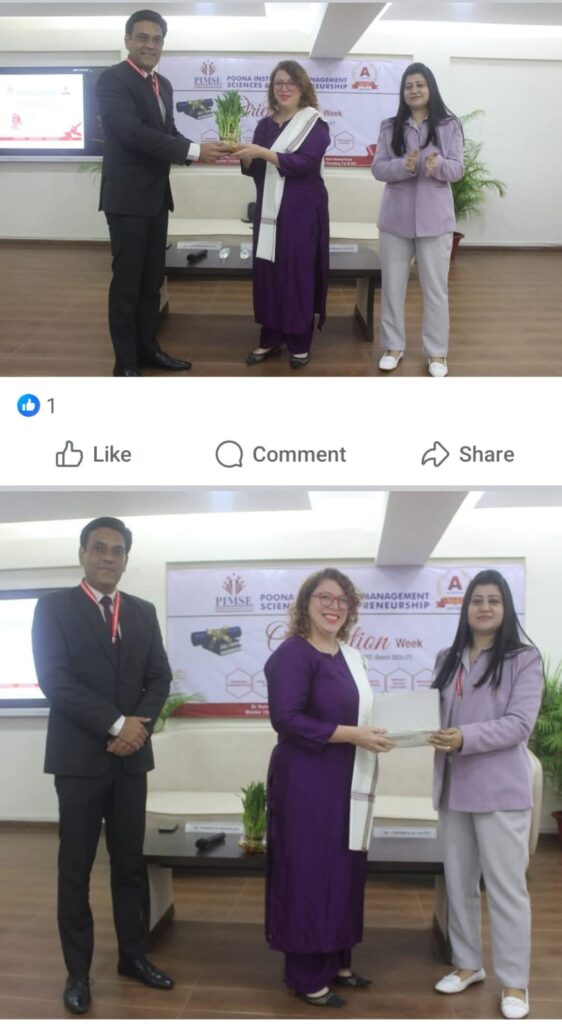 पुणे इन्स्टिट्यूट ऑफ मॅनेजमेंट सायन्सेस अँड आंत्रप्रेन्योरशिप (PIMSE) येथे आयोजित ओरिएंटेशन वीक दरम्यान विद्यार्थ्यांना आंतरराष्ट्रीय स्तरावरील प्रतिष्ठित नेत्या Ms. Maud यांचे मार्गदर्शन लाभले.