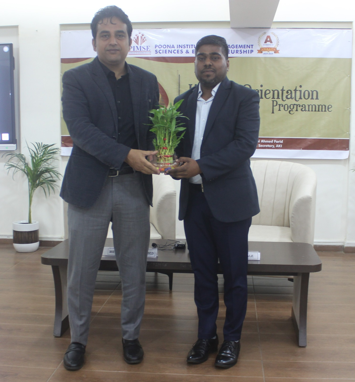 पूना इन्स्टिट्यूट ऑफ मॅनेजमेंट सायन्सेस अँड आंत्रप्रुनरशिप (PIMSE) येथे दिनांक २७ सप्टेंबर २०२५ रोजी सकाळी ११.०० वाजता एमबीए प्रथम वर्षाच्या विद्यार्थ्यांसाठी लायब्ररी ओरिएंटेशन प्रोग्रॅम चे आयोजन करण्यात आले. प्रमुख पाहुणे म्हणून श्री. चेतन टाकसाळे, डायरेक्टर – सॉफ्ट टेक सोल्यूशन्स, पुणे उपस्थित होते. त्यांनी डिजिटल लायब्ररीचे महत्त्व व ओपन सोर्स डेटाबेसचा शैक्षणिक व संशोधनासाठी कसा उपयोग करावा हे मार्गदर्शन केले. कार्यक्रमाचे उद्घाटन व स्वागत विद्यार्थ्यांनी केले तर प्रास्ताविक प्रा. मोहद तल्हा अहमद यांनी केले. हा कार्यक्रम डॉ. पोरीनिता बनर्जी, डायरेक्टर (इंचार्ज) यांच्या मार्गदर्शनाखाली व श्री. मुबारक तांबोळी, ग्रंथपाल व लायब्ररी समितीच्या समन्वयाने यशस्वीरीत्या पार पडला.