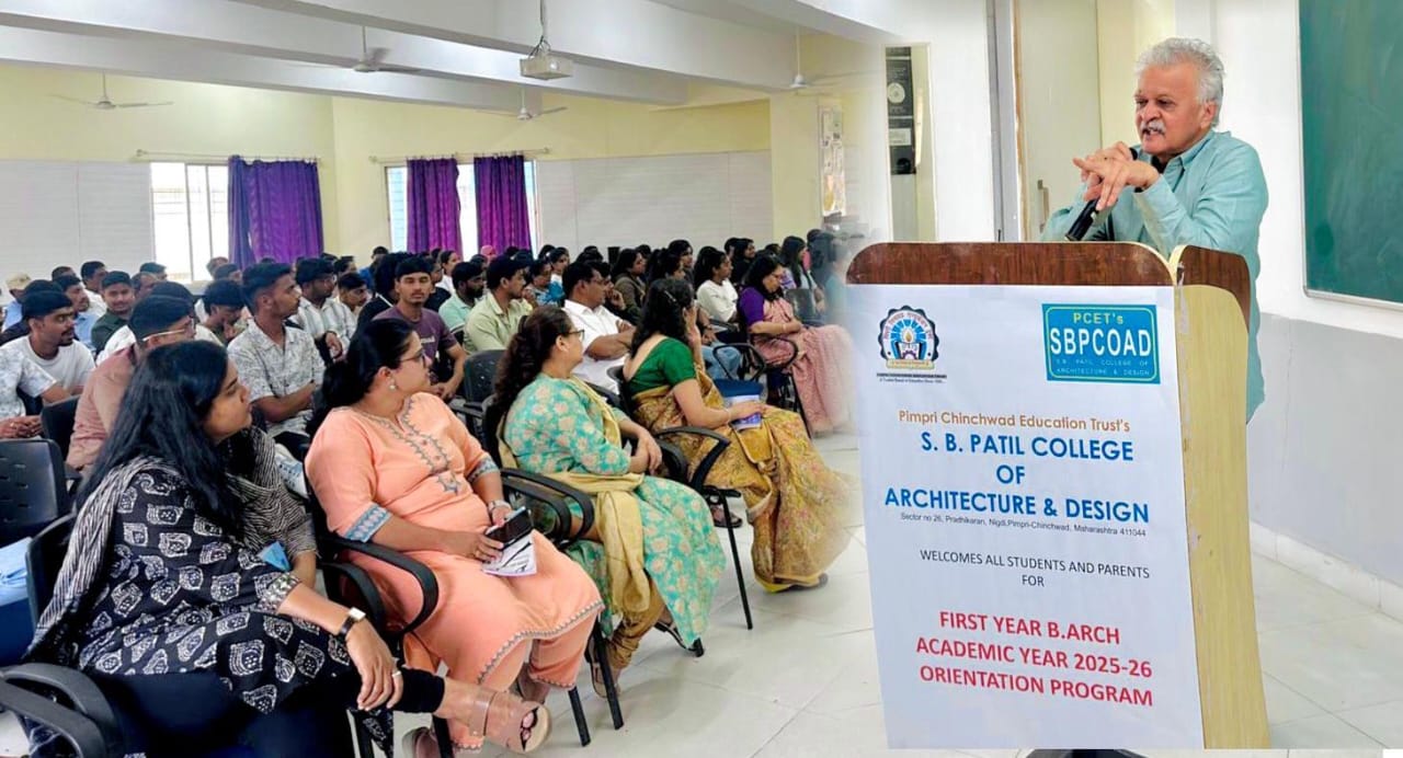 पिंपरी चिचवड एज्युकेशन ट्रस्टच्या (पीसीईटी) एस.बी. पाटील कॉलेज ऑफ आर्किटेक्चर अँड डिझाइन (एसबीपीसीओएडी) येथे आर्किटेक्चरच्या २०२५ या शैक्षणिक वर्षातील प्रथम वर्षासाठी प्रवेश घेतलेल्या विद्यार्थ्यांसाठी स्वागत आणि तज्ज्ञांचे मार्गदर्शन हा कार्यक्रम नुकताच आयोजित करण्यात आला होता. यावेळी एसबीपीसीओएडीच्या प्राचार्य डॉ. स्मिता सूर्यवंशी उपस्थित होत्या.
