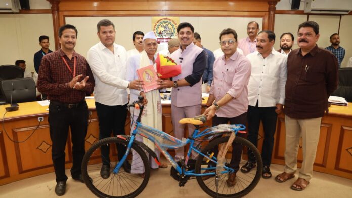 “झाडे लावा – झाडे जगवा” तसेच “सायकल चालवा-पर्यावरण वाचवा” यासारख्या सामाजिक कार्याचा प्रचार व प्रसार करणा-या ८४ वर्षांच्या सायकलपटूस महापौर यांच्या हस्ते सायकल भेट देऊन सत्कार…
