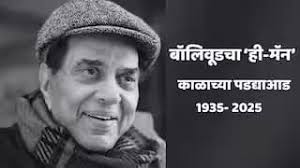 बॉलीवूडचे दिग्गज आणि हिंदी सिनेमा जगतात “ही-मॅन” म्हणून ओळखले जाणारे अभिनेते धर्मेंद्र यांचे निधन झाले आहे. न्यूज एजन्सी IANS ने दिलेल्या माहितीनुसार, धर्मेंद्र यांनी आज अखेरचा श्वास घेतला. त्यांच्या जाण्याने संपूर्ण चित्रपटसृष्टीवर शोककळा पसरली आहे. ते 89 वर्षांचे होते. गेल्या काही दिवसांपासून त्यांची प्रकृती अस्वस्थ होती.