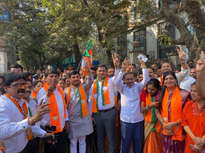 पिंपरी-चिंचवड महापालिका निवडणुकीत भारतीय जनता पक्षाने १२८ जागांपैकी ८५ जागांवर निर्विवाद बहुमत मिळवत दणदणीत विजय संपादन केला आहे. या विजयामुळे शहराच्या राजकीय इतिहासात भाजपने आपले वर्चस्व पुन्हा एकदा सिद्ध केले असून, पक्ष कार्यकर्ते व समर्थकांमध्ये आनंदाचे वातावरण पसरले आहे. या विजयाचा जल्लोष पिंपरीतील मोरवाडी येथील भाजप कार्यालयासमोर कार्यकर्त्यांनी साजरा केला. एकमेकांना पेढे भरवत या उत्साहात कार्यकर्ते सहभागी झाले.
