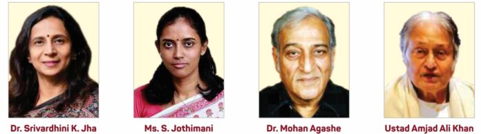 प्रा. डॉ. श्रीवर्धनी के. झा, ज्योथिमणी सेन्नीमलाई, पद्मश्री डॉ. मोहन आगाशे आणि पद्मविभूषण उस्ताद अमजद अली खान यांचा ३ फेब्रुवारी रोजी होणार सन्मान