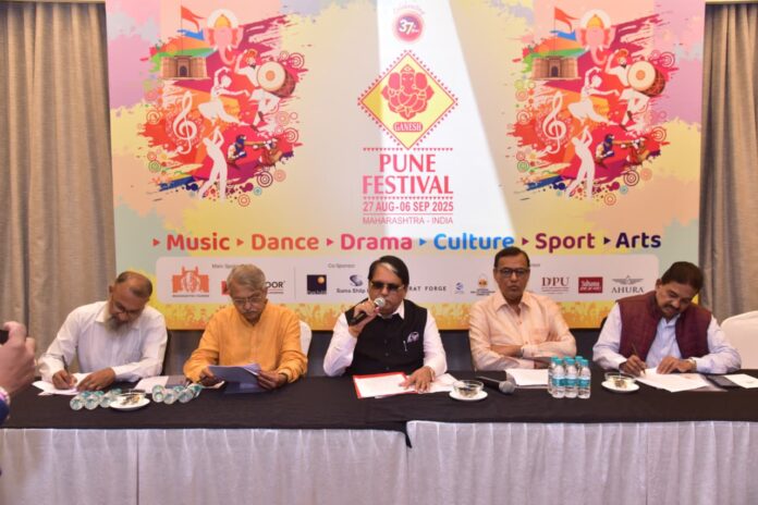 कला, संस्कृती, गायन, वादन, नृत्य, संगीत, क्रीडा आणि पर्यटनविकास यांचा मनोहारी संगम असणारा ‘पुणे फेस्टिव्हल’ यंदा गौरवशाली ३७वे वर्ष साजरे करीत आहे. यंदा २७ ऑगस्ट ते ६ सप्टेंबर या सार्वजनिक गणेशोत्सवाच्या काळात ‘पुणे फेस्टिव्हल’ संपन्न होईल. याचे उद्घाटन शुक्रवार, दि. २९ ऑगस्ट २०२५ रोजी सायंकाळी ४.३० वाजता महाराष्ट्राचे राज्यपाल मा. सी. पी. राधाकृष्णन यांच्या हस्ते श्री गणेश कला-क्रीडा रंगमंच, स्वारगेट, पुणे येथे संपन्न होईल. केंद्रीय पर्यटन व सांस्कृतिकमंत्री मा. गजेंद्रसिंह शेखावत, केंद्रीय नागरी हवाई उड्डाण राज्यमंत्री मा. मुरलीधर मोहोळ, महाराष्ट्राचे उच्च व तंत्रशिक्षणमंत्री मा. चंद्रकांत पाटील, महाराष्ट्राचे पर्यटनमंत्री मा. शंभूराज देसाई आणि महाराष्ट्राच्या महसूल राज्यमंत्री मा. माधुरी मिसाळ हे याप्रसंगी प्रमुख पाहुणे म्हणून उपस्थित राहतील. यासोबतच खा. सुप्रिया सुळे, खा. मेधा कुलकर्णी, खा. श्रीरंग बारणे, खा. सुनेत्रा पवार, महाराष्ट्र प्रदेश कॉंग्रेस अध्यक्ष हर्षवर्धन सपकाळ, पुणे मनपा आयुक्त श्री. नवलकिशोर राम, महाराष्ट्र पर्यटनविकास महामंडळाच्या पुणे विभागाच्या उपसंचालिका सौ. शमा पवार हे याप्रसंगी विशेष निमंत्रित म्हणून उपस्थित राहतील. तसेच अनेक परदेशी पाहुणे व परदेशी विद्यार्थीदेखील उद्घाटन सोहळ्यास उपस्थित राहण्याची शक्यता आहे, अशी माहिती पुणे फेस्टिव्हलचे उपाध्यक्ष कृष्णकुमार गोयल आणि मुख्य संयोजक अॅड. अभय छाजेड यांनी पत्रकार परिषदेत दिली. याप्रसंगी पुणे फेस्टिव्हलचे सांस्कृतिक कार्यक्रम समन्वयक डॉ. सतीश देसाई, माजी गृह राज्यमंत्री रमेश बागवे, Abdul Inamadar, Trustee – Azam Campus यावेळी उपस्थित होते.